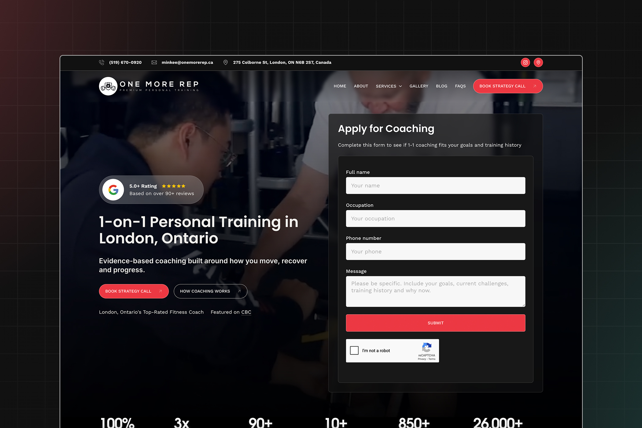 The new One More Rep website is purpose-built to turn visitors into clients. Every design decision, page layout, and piece of content was guided by a clear conversion strategy — removing friction, building trust, and making it easy for prospective members to take the next step.